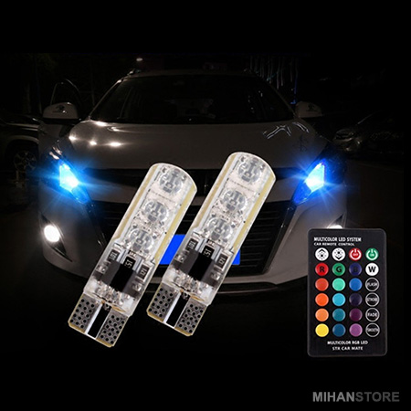 لامپ خودرو مدل Multi Color قابل‌ نصب برای انواع چراغ کوچک, چراغ پلاک و کلیه سوکت های سکن با پایه آریایی دارای ریموت برای تغییر رنگ‌های لامپ و یا روشن و یا خاموش کردن و یا کم و یا زیاد کردن و حالت چشمک‌زن نور لامپ‌ها را دارد و مناسب برای انواع خودرو سواری و سنگین و همچنین موتورسیکلت می‌باشد. لامپ خوردو مدل Multi Color با لامپ‌های LED شش عددی باروکش ژله‌ای با نوردهی بسیار عالی و ریموت کنترل جهت تغییر رنگ و حالت‌های نور با تولید گرمای بسیار ناچیز و مصرف بسیار کم یکی از محصولات حرفه‌ای و بسیار پرطرفدار در نورپردازی خودرو است.