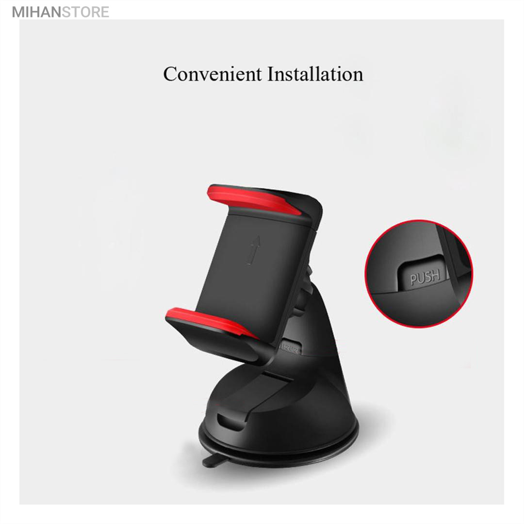 پایه نگهدارنده گوشی موبایل با بادکش های لاستیکی بسیار قوی قابلیت چسبندگی برروی هر سطحی از جمله داشبورد خودرو، شیشه جلویی اتومبیل، میز کار و غیره را خواهد داشت. جنس بدنه این هولدر از پلاستیک بوده و در قسمت گیرهای از پوشش سیلیکون برای جلوگیری از لیز خوردن گوشی موبایل استفاده شده است. با استفاده از هولدر موبایل ذکر شده امکان چرخش 360 درجه و یا قرار گرفتن در حالت عمودی و افقی امکان پذیر میباشد، که در هنگام رانندگی آسودگی خاطر بالایی برای راننده فراهم میآورد. این پایه نگهدارنده گوشی موبایل برای گوشی های هوشمند با سایز حداکثر 6 اینج مناسب میباشد. پایه سیلیکونی که به کمک بادکشی بودن به سطوح وصل میشود جوری که طراحی شده که شما میتوانید بارها پایه را جدا کنید و جابجا کنید و مثل روز اول با همان مقاومت به سطح وصل شود و اگر در مجاورت گردو خاک چسبندگی سیلیکون کم شد فقط کافیست پایه را بشورید و استفاده کنید.
