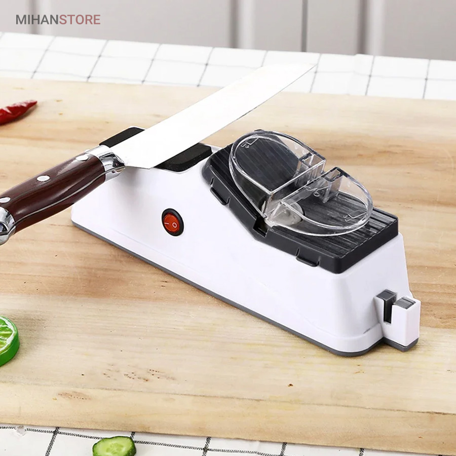 محصولی پرکاربرد که وجود آن در هر آشپزخانه ای لازم است. چاقو تیز کن برقی در کوتاه ترین زمان ممکن سطح انواع لوازم نوک تیز مانند کاردهای گوشت بری، میوه بری و حتی قیچی را تیز خواهد نمود که این امر سرعت کار پخت و پز و خیاطی شما را افزایش خواهد داد. وجه تمایز این نمونه با نمونه های قدیمی، کوچک و قابل حمل بودن محصول است. همچنین در بخش قرارگیری چاقو کاور محافظ قرار داده شده تا از آسیب احتمالی جلوگیری نماید. دستگاه چاقو تیز کن با کابل USB شروع به کار می کند و جنس دسته و بدنه آن از پلاستیک مرغوب است.